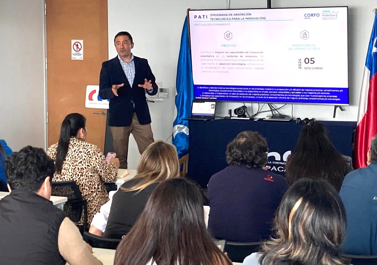 Contribuir a mejorar las capacidades de innovación sistemática en un conjunto de empresas, de preferencia Pymes, es uno de los principales objetivos del Programa de Absorción Tecnológica para la Innovación (PATI) que fue difundido por Corfo a empresarios, consultores y académicos de la Región de Tarapacá.