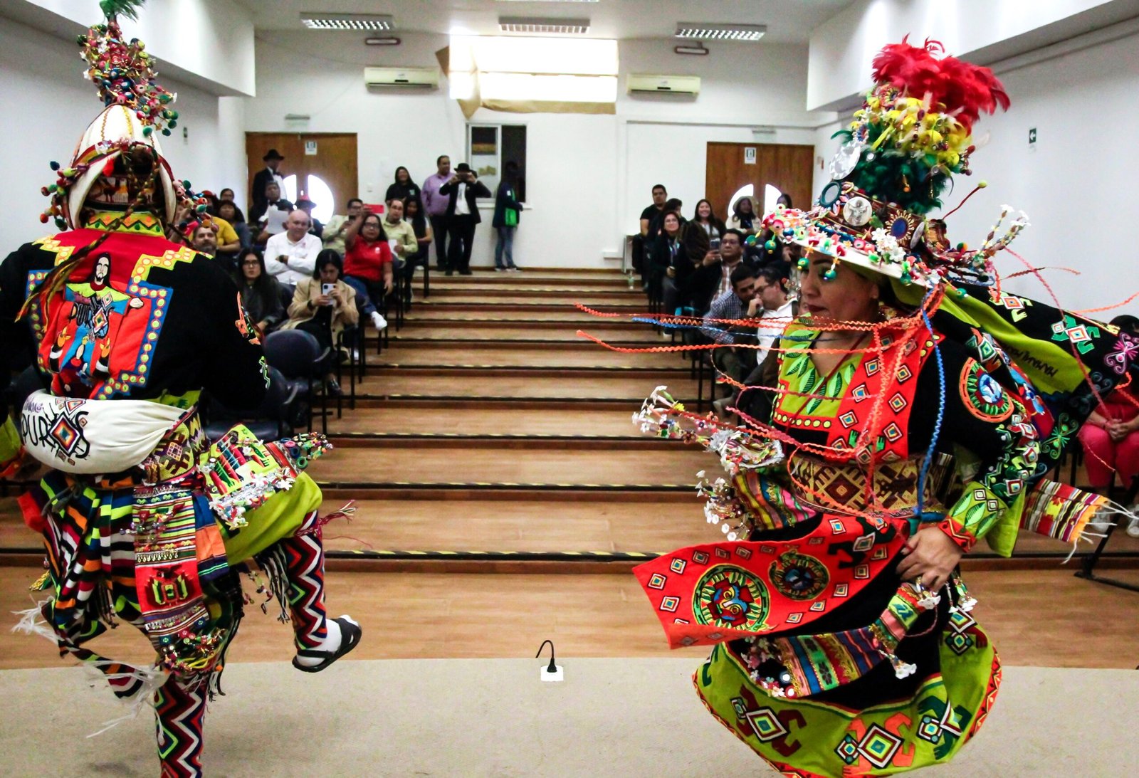 Durante la ceremonia, participó el grupo folclórico Tunupa, quienes compartieron el baile tradicional del Cachimbo, conectándonos la identidad nortina y demostrando cómo esta danza sigue vigente en la región. También se presentó el grupo de Tinkus Puros, Filial Iquique, los que llenaron el escenario de historia, colores, elegancia y fuerza ancestral.