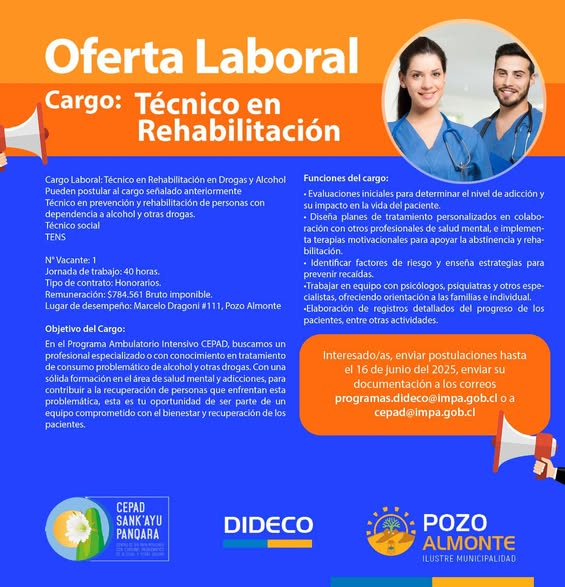 Postulaciones a: programas.dideco@impa.gob.cl y/o a cepad@impa.gob.cl