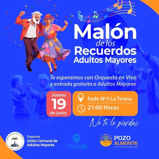 Invitamos a todos y todas los adultos mayores de La Tirana a disfrutar de una noche mágica, llena de bailes y risas completamente GRATIS 🥳.