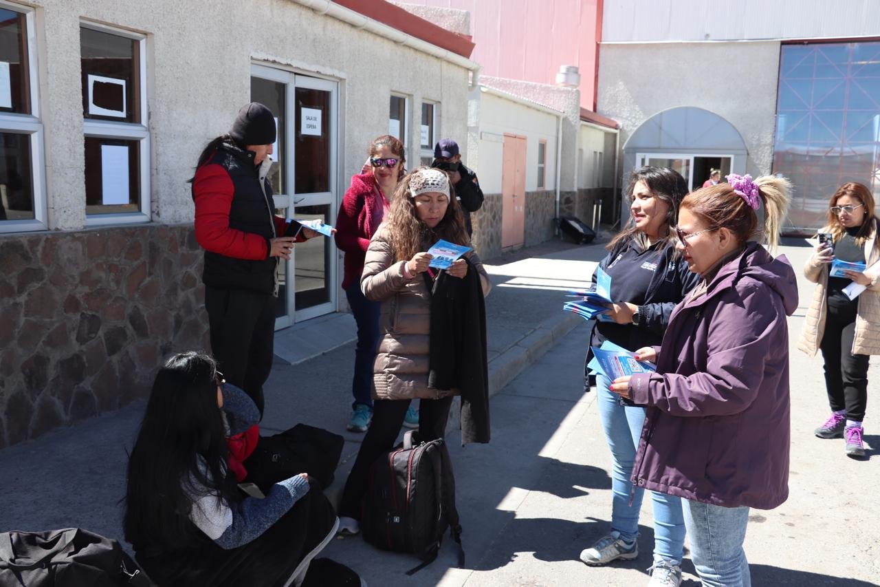 La delegada presidencial provincial del Tamarugal y la seremi de la Mujer y la Equidad de Género entregaron información a los usuarios del recinto sobre los canales de denuncia para víctimas y testigos, tanto de explotación sexual como de trabajo forzado.