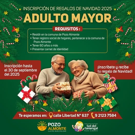 Inscripción de regalos Navidad 2025 Adulto Mayor .