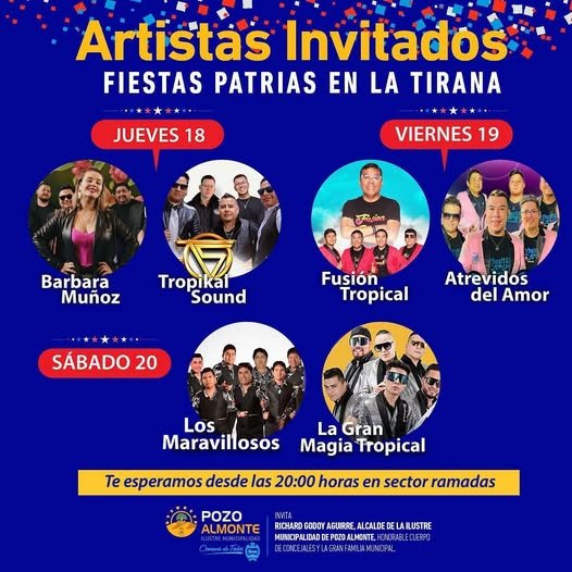Invitamos a toda la comunidad de La Tirana a disfrutar de los tres días de celebración de las fiestas patrias con grandes invitados