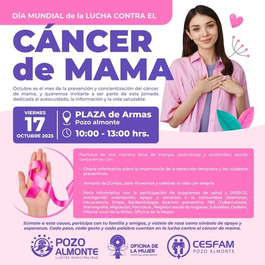 Octubre es el mes de la prevención y concientización del cáncer de mama, y queremos invitarte a participar de una jornada dedicada al autocuidado, la información y la vida saludable .