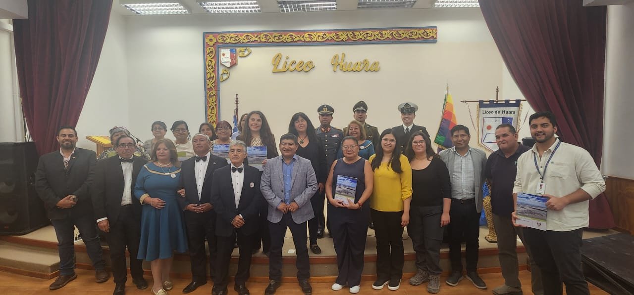 El acto, desarrollado en el Aula Magna del Liceo Huara, fue encabezado por el alcalde José Bartolo Vinaya, junto a la seremi del Medio Ambiente de Tarapacá, Patricia Pérez Zamorano, seremi de Energía, Séfora Sidgman, y el director de la Secretaría Comunal de Planificación (SECPLAC), Williams Mamani Ticuna.