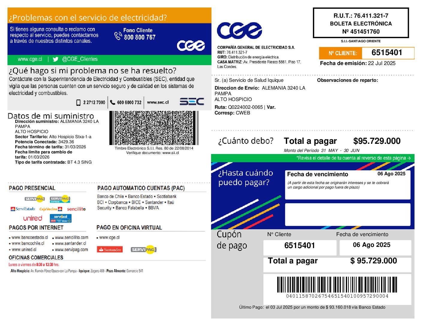 «Más de 183 millones de pesos fueron cobrados de manera irregular por parte de la empresa eléctrica CGE al Hospital de Alto Hospicio. Hace más de un mes enviamos un oficio de fiscalización al conocer estos hechos y tanto la SEC como la Seremi de Energía han determinado de manera efectiva este cobro irregular.