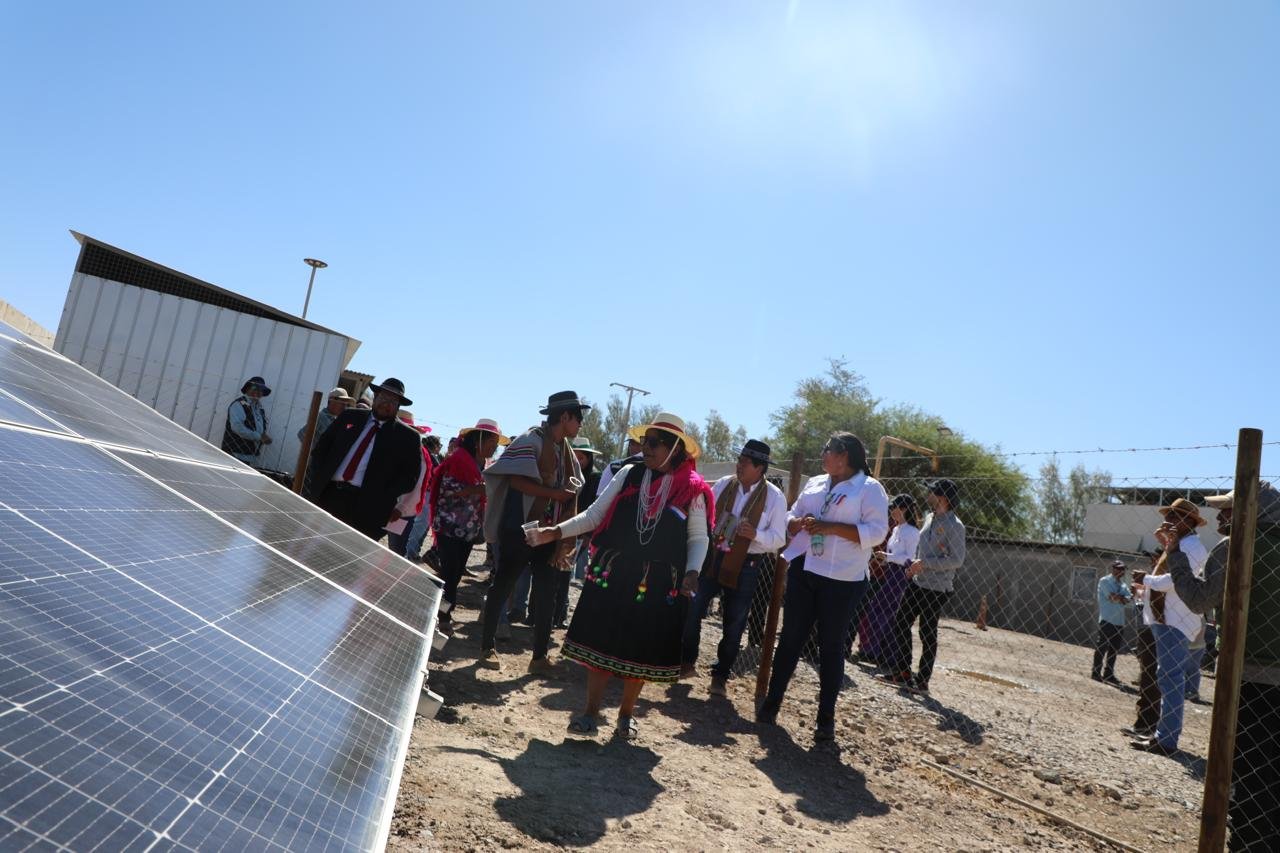 Durante la gira también se inauguró un sistema de bombeo fotovoltaico para acumulación de agua de regadío de alfalfa y hortalizas, impulsado por INDAP, a través del Programa Riego Asociativo, en beneficio de la Asociación Indígena Aymara Flor del Desierto, en la comuna de Pozo Almonte. Este sistema permitirá regar 25 hectáreas de cultivos mediante la instalación de 96 paneles fotovoltaicos.