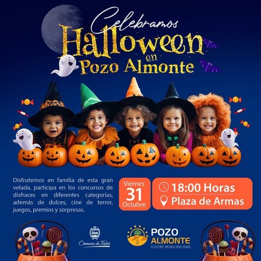 El municipio invita a todas las familias de nuestra comuna a participar en una entretenida actividad de Halloween, llena de color, disfraces y diversión para los grandes y pequeños  .