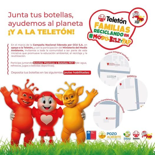 Invitamos a toda la comunidad de Pozo Almonte a sumarse juntando botellas plásticas (agua, refrescos, jugos y bebidas deportivas) y disponerlas en las jaulas habilitadas en: