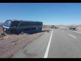 Equipos de emergencia monitorean un accidente de tránsito ocurrido en el sector Victoria, en las cercanías de instalaciones de SQM, donde una camioneta colisionó con un bus.