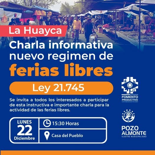 Invitamos a todos los comerciantes e interesados, a participar de una charla informativa sobre el nuevo regimen de FERIAS LIBRES (LEY 21.745) .