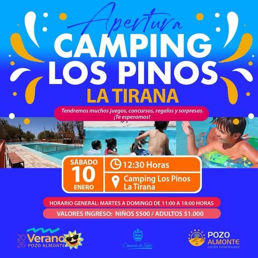 Este sábado 10 de enero, te invitamos a la apertura del Camping Los Pinos, un panorama perfecto para disfrutar en familia y con amigos