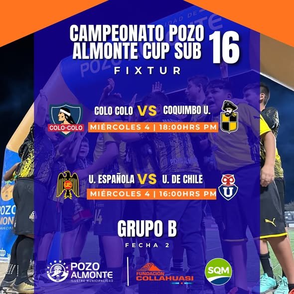¡Ven a apoyar a los jóvenes deportistas y sé parte de esta gran fiesta deportiva en Pozo Almonte, asiste al estadio de manera ordenada y respetando las normas del lugar! ¡LOS ESPERAMOS!