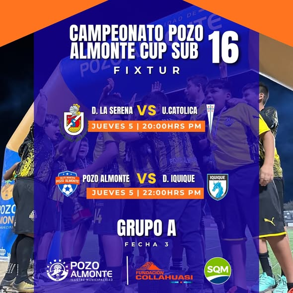 ¡Ven a apoyar a los jóvenes deportistas y sé parte de esta gran fiesta deportiva en Pozo Almonte, asiste al estadio de manera ordenada y respetando las normas del lugar! ¡LOS ESPERAMOS!