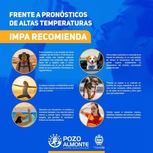 Ante los pronósticos de calor extremo, desde la Ilustre Municipalidad de Pozo Almonte a través de IMPA, te invitamos a tomar medidas de prevención para proteger tu salud y la de tus mascotas