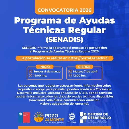La Oficina de Desarrollo Inclusivo estará realizando las postulaciones para las personas de la comuna de Pozo Almonte, brindando apoyo y orientación durante todo el proceso .