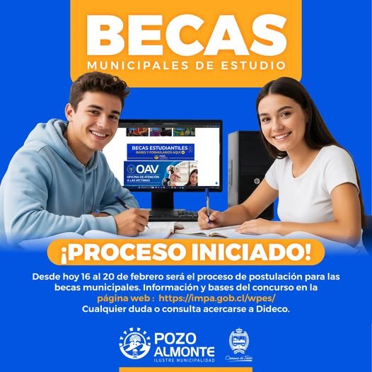 Desde hoy hasta el 20 de febrero se podrá postular a las Becas Municipales de Estudio. Las bases del concurso están arrojadas aquí en nuestra página web: https://impa.gob.cl/wpes/.