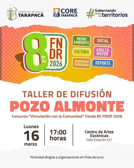 📌 El día Lunes 16 de marzo, en el Centro de Artes Escénicas de Pozo Almonte.