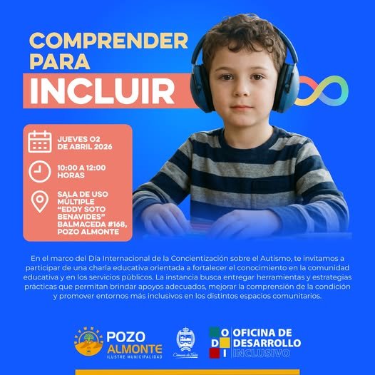 En el marco del Día Internacional de la Concienciación sobre el Autismo, te invitamos a participar en esta charla educativa, orientada a fortalecer el conocimiento y la comprensión sobre el autismo en nuestra comunidad.