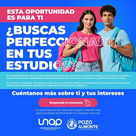 La Encuesta de Perfilamiento y Detección de Necesdades 2026 nos permitirá conocer intereses para futuras ofertas de carreras ténicas de nivel superior, programas de continuidad de estudios, diolomados, cursos de capacitación y perfeccionamiento ![]()